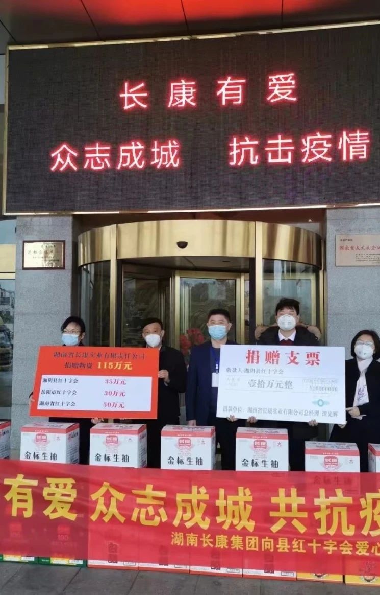 從5萬(wàn)元物資慰問(wèn)縣防汛工作者,到在當(dāng)?shù)毓诿麆?chuàng)立“洋沙湖鎮(zhèn)長(zhǎng)康愛(ài)心教育基金會(huì)”,再到馳援甘肅、張家界等地,以及疫情期間向湖南省、岳陽(yáng)市、湘陰縣紅十字會(huì)捐贈(zèng)115萬(wàn)元生活物資,長(zhǎng)康集團(tuán)始終沖在前面,竭盡所能回饋社會(huì)。